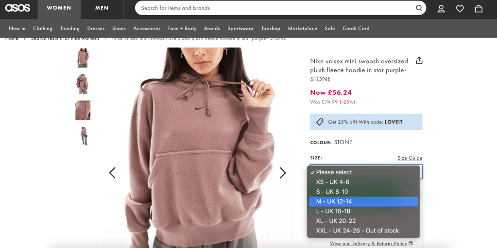 Let’s bring this back to my time at ASOS and think about a product page. Imagine you’re looking at a Nike Hoodie.